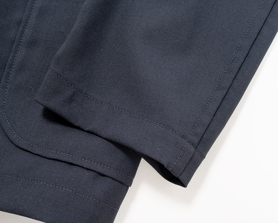 | チノのダブルステッチは巻縫いなのでパッカリングが少し出ています。 |