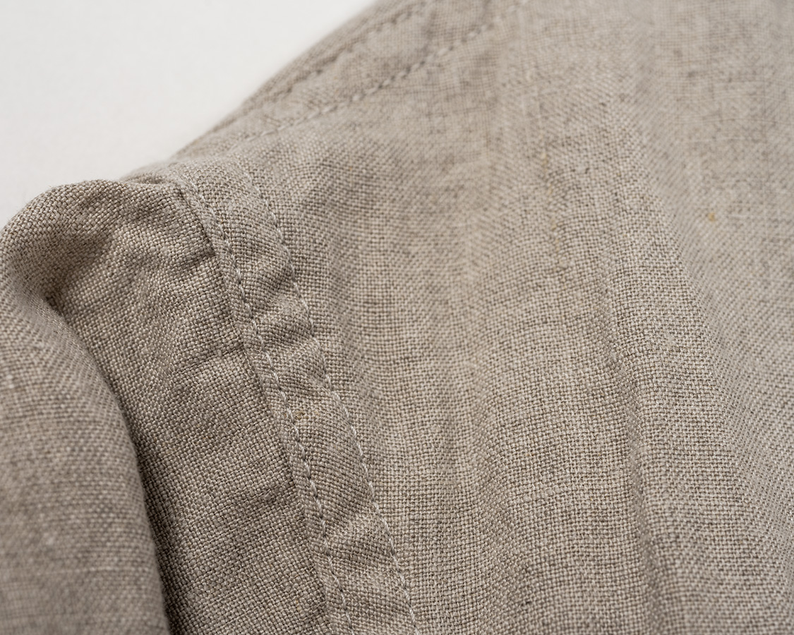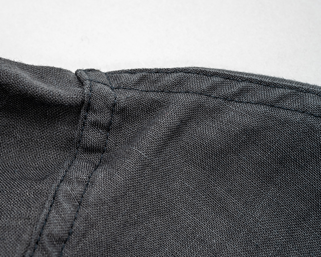 肩はダブルステッチの巻縫い、裏チェーン。