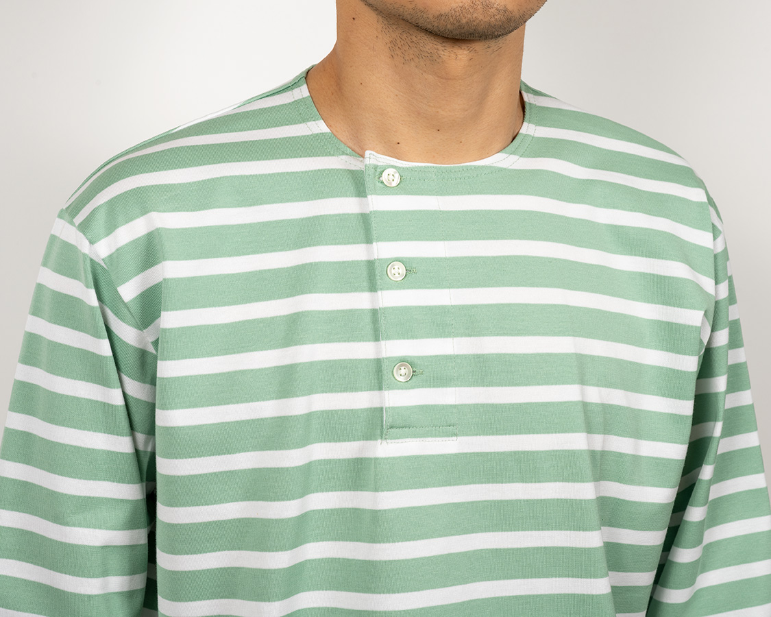 Border Henley, Half Sleeve, Aqua x White Border Henley, Half Sleeve, Black x White Border Henley, Half Sleeve, Navy x White Border Henley, Half Sleeve, Opal Green x White