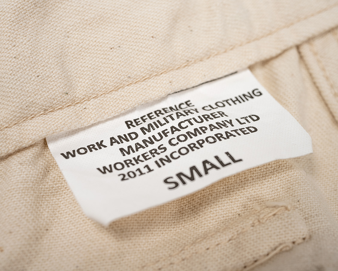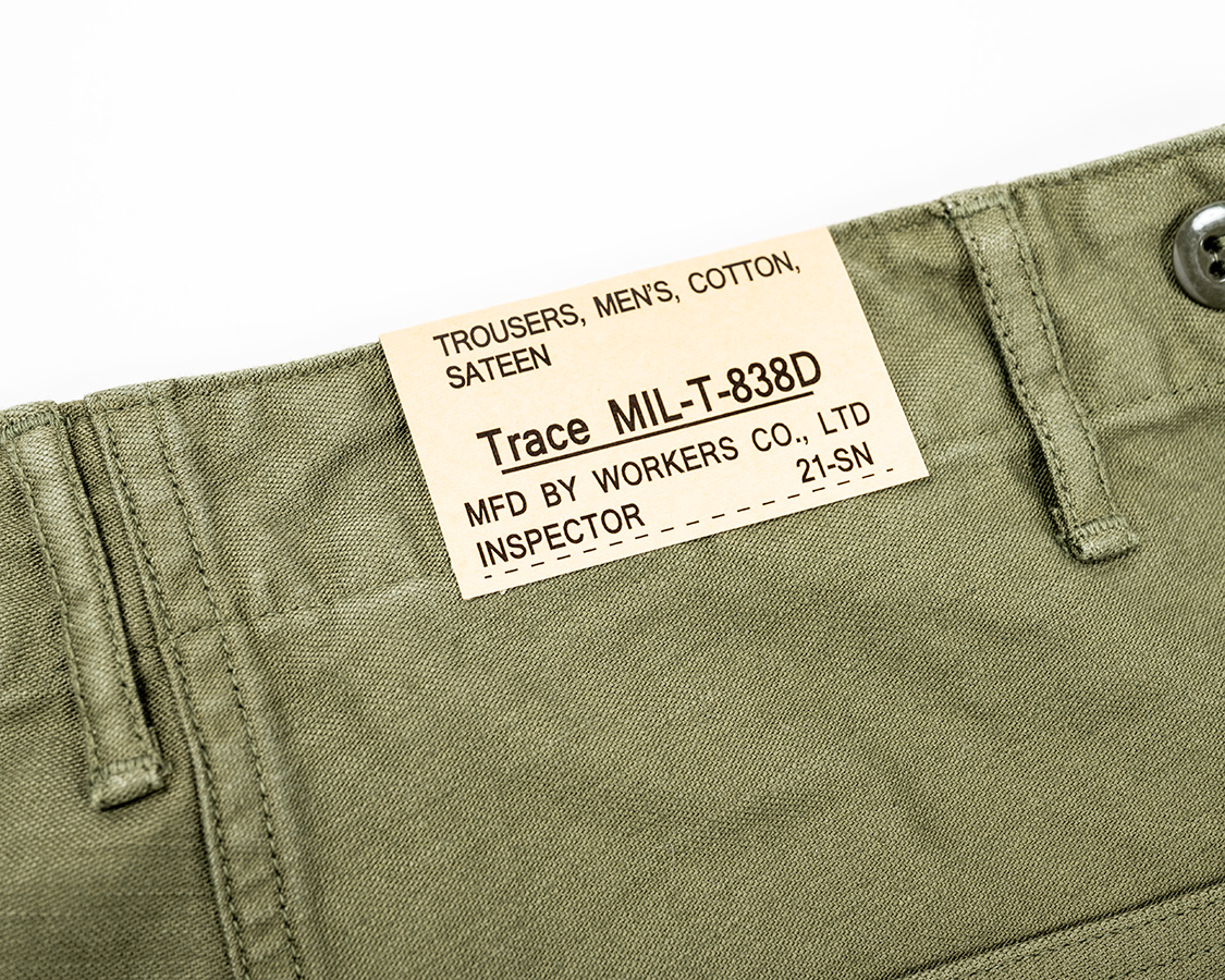 腰裏に流し込んだサイズ兼ブランドネーム。ミリタリー風のプリントネームです。