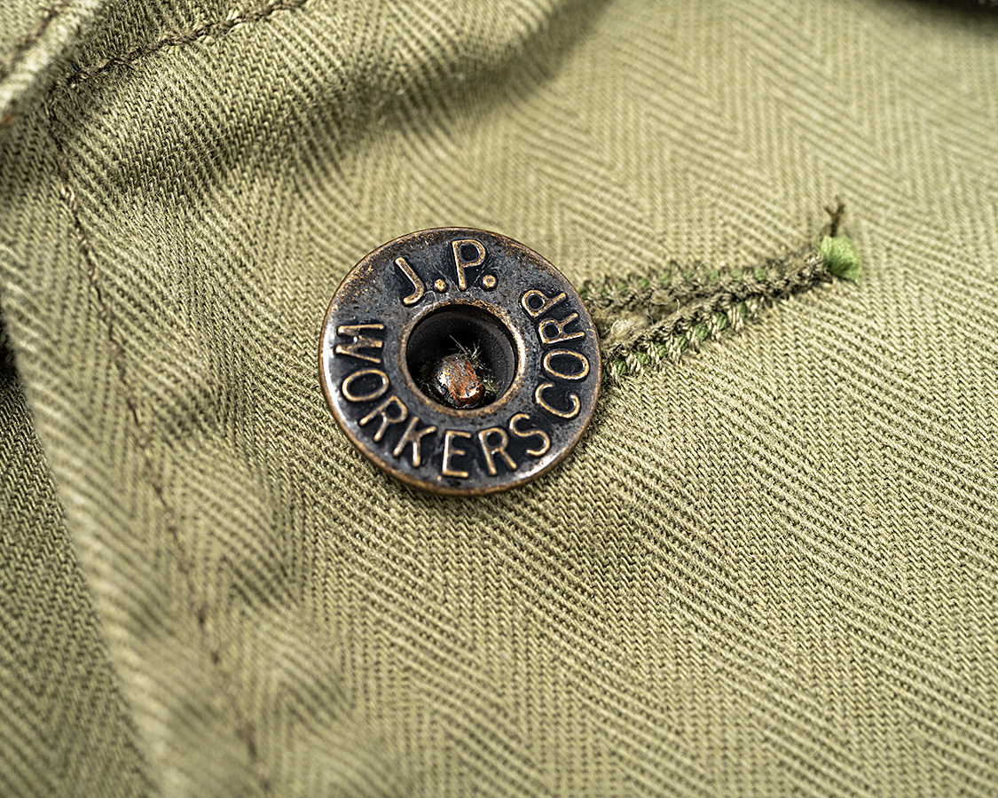 一般的に、P-41はもう少し角ばった胸ポケット。P-47は丸みがある・・・と言われていますが、個体差もあるので何とも言えません。今回は参考にしたオリジナルの丸みを参考に。さらに、オリジナルがきれいにペン差しステッチが外されてしまっていたのでそれも真似てみました。本来なら、ペン差しステッチがありそれをちゃんと真似てますよ!というほうが「リプロ」的には正解ですが、そういうのは別のブランド・メーカーさんがいくらでもあるので。