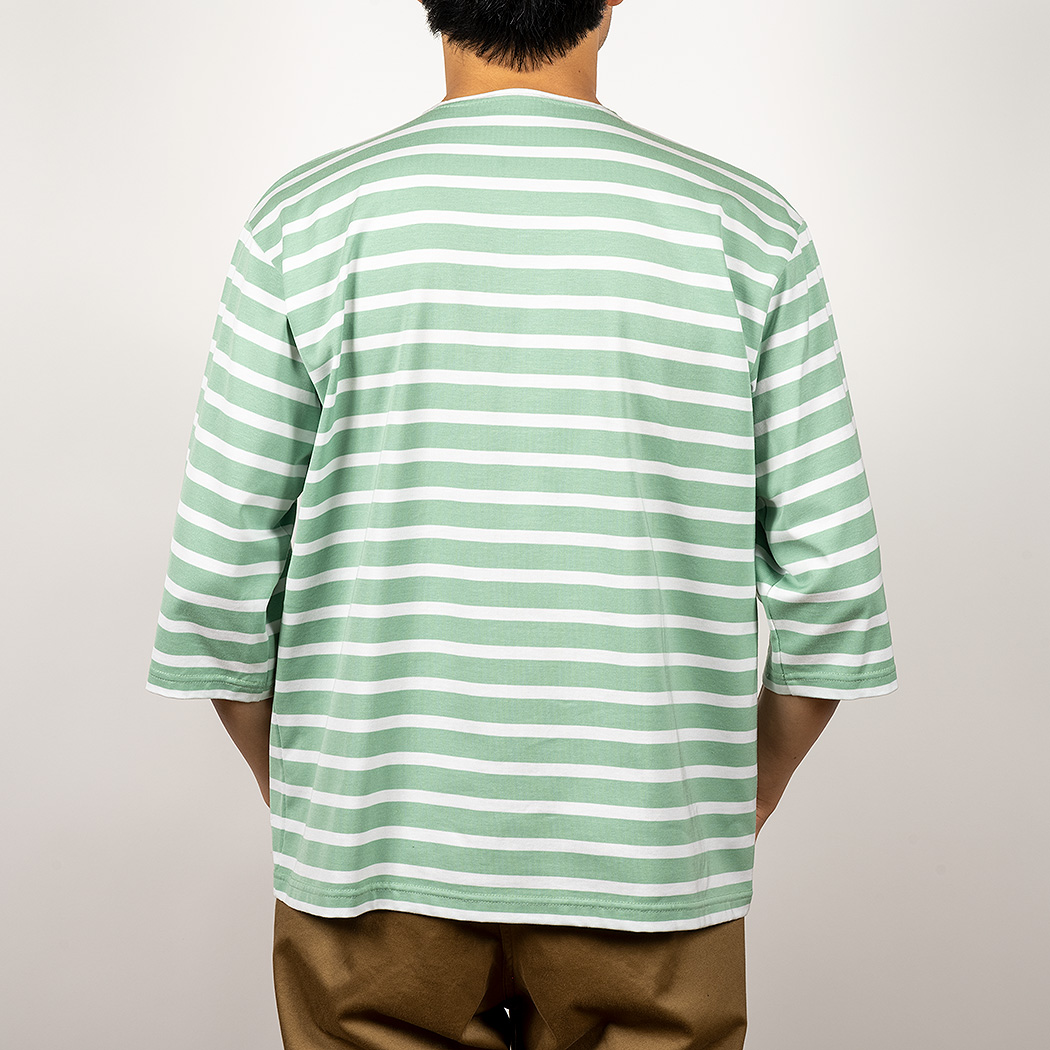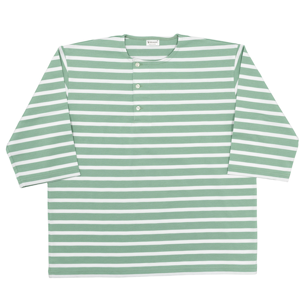 Border Henley, Half Sleeve, Opal Green x White |