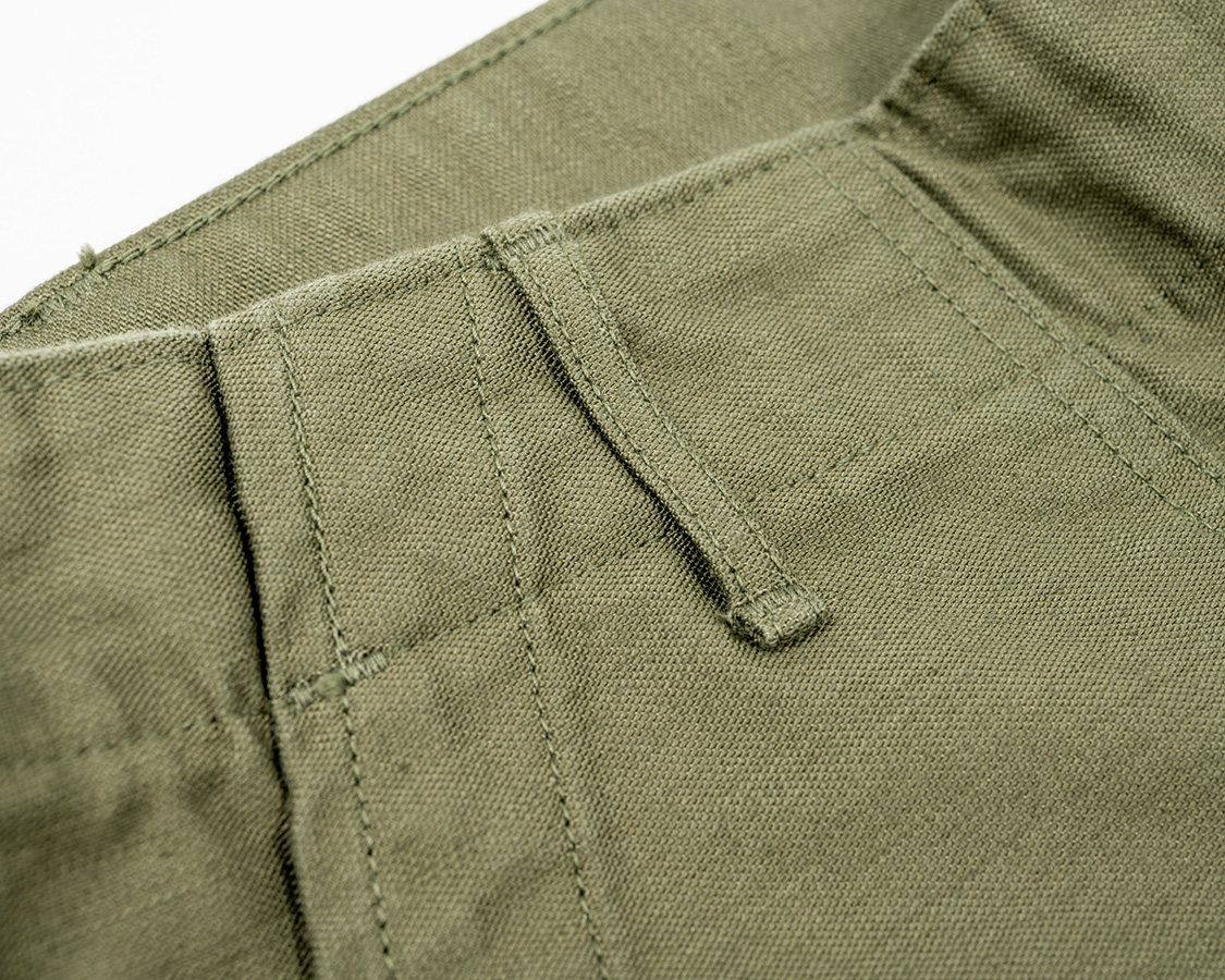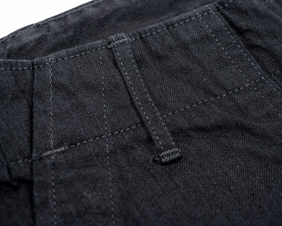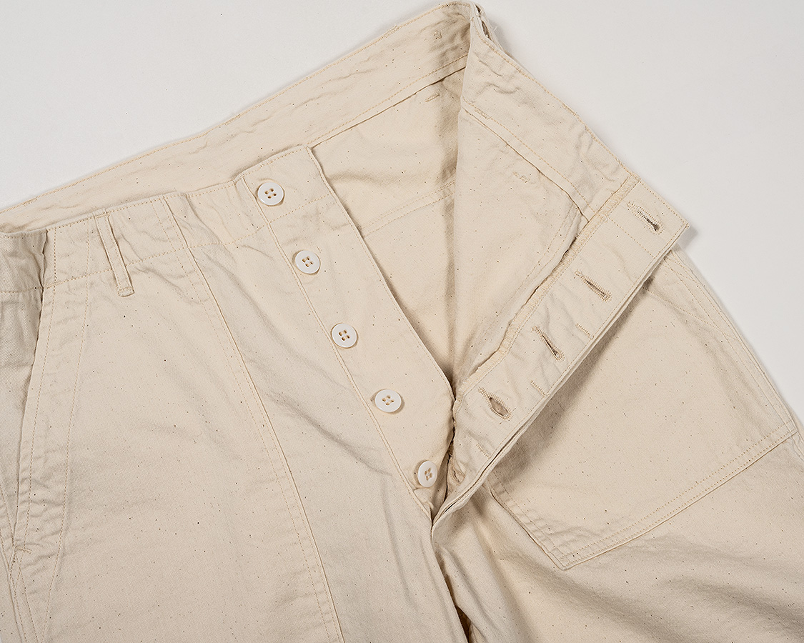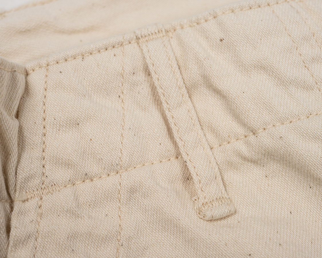 フロントボタンフライ。深めのまた上、ワタリもオリジナルのベーカーから型紙を取ったのでゆったり。
