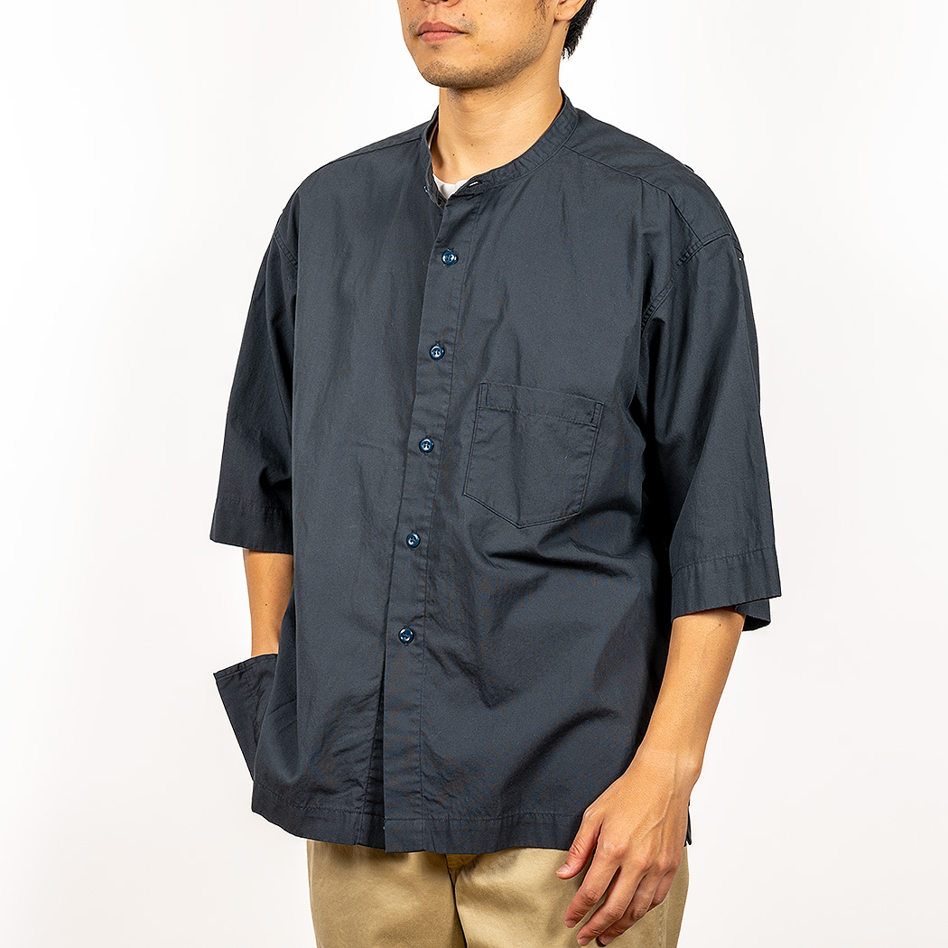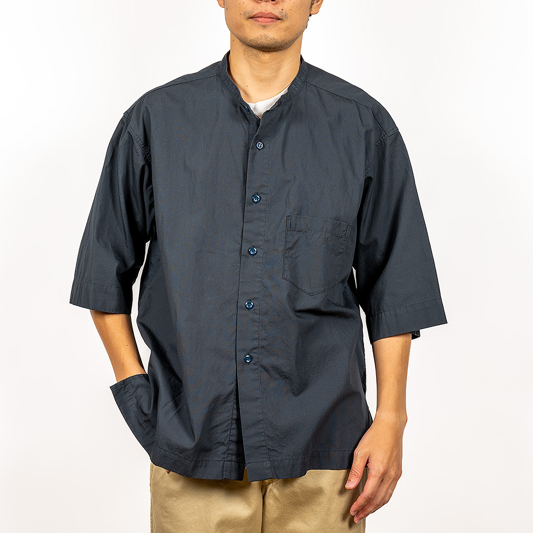 品名 Band Collar Short Sleeve, Cotton Linen Navy