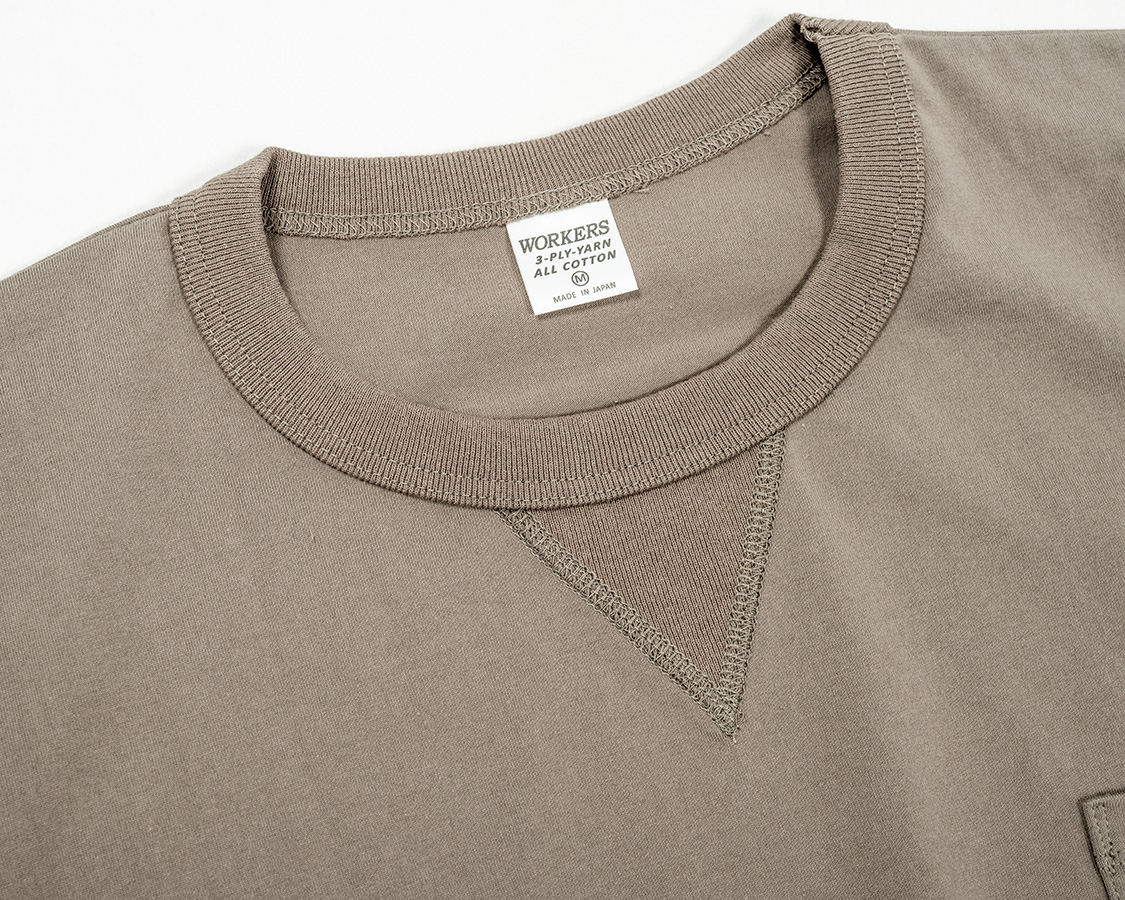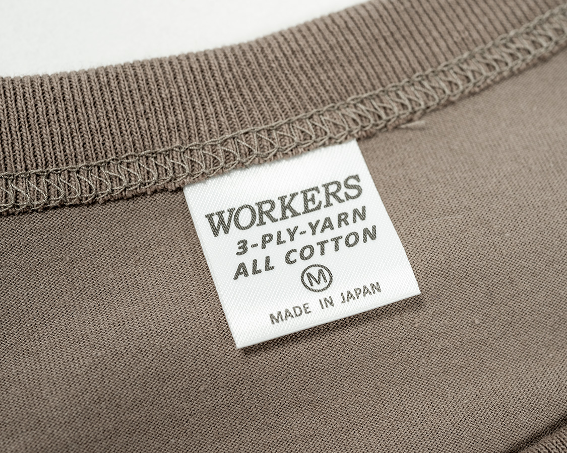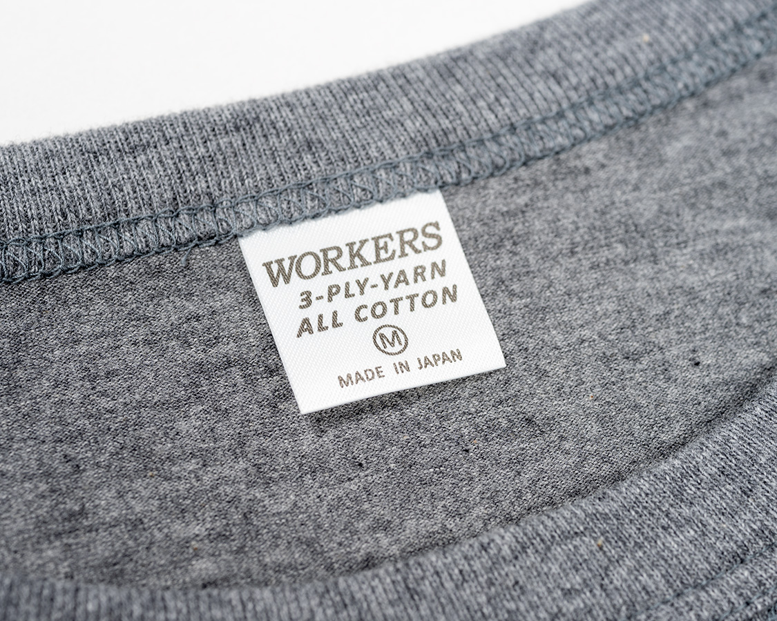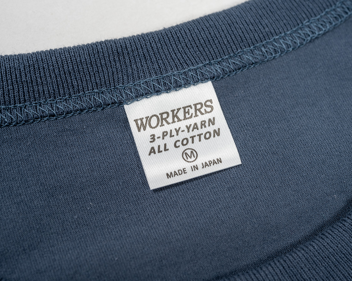 3-PLY-YARN、わざわざ専用ネーム作ってます。ビンテージの洋服見ていて、確か2-PLYだったか・・・でこういう専用ネーム作っているものがありました。「昔の人も材料が違うんだ!って言いたかったんだよなぁ」と共感。素材、特に糸の撚り本数は大事だけどぱっと見ではなかなかわかってもらいづらい部分。