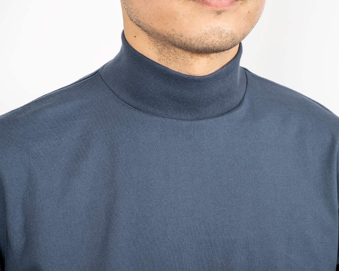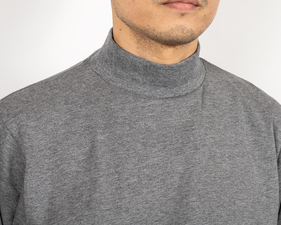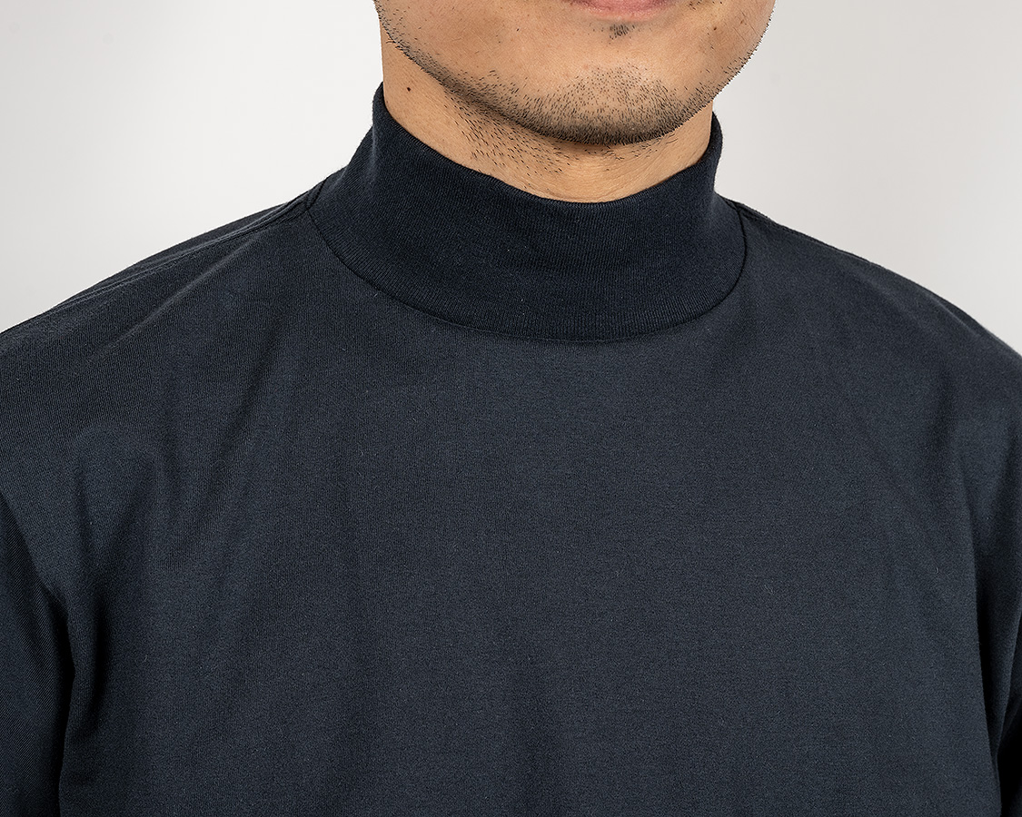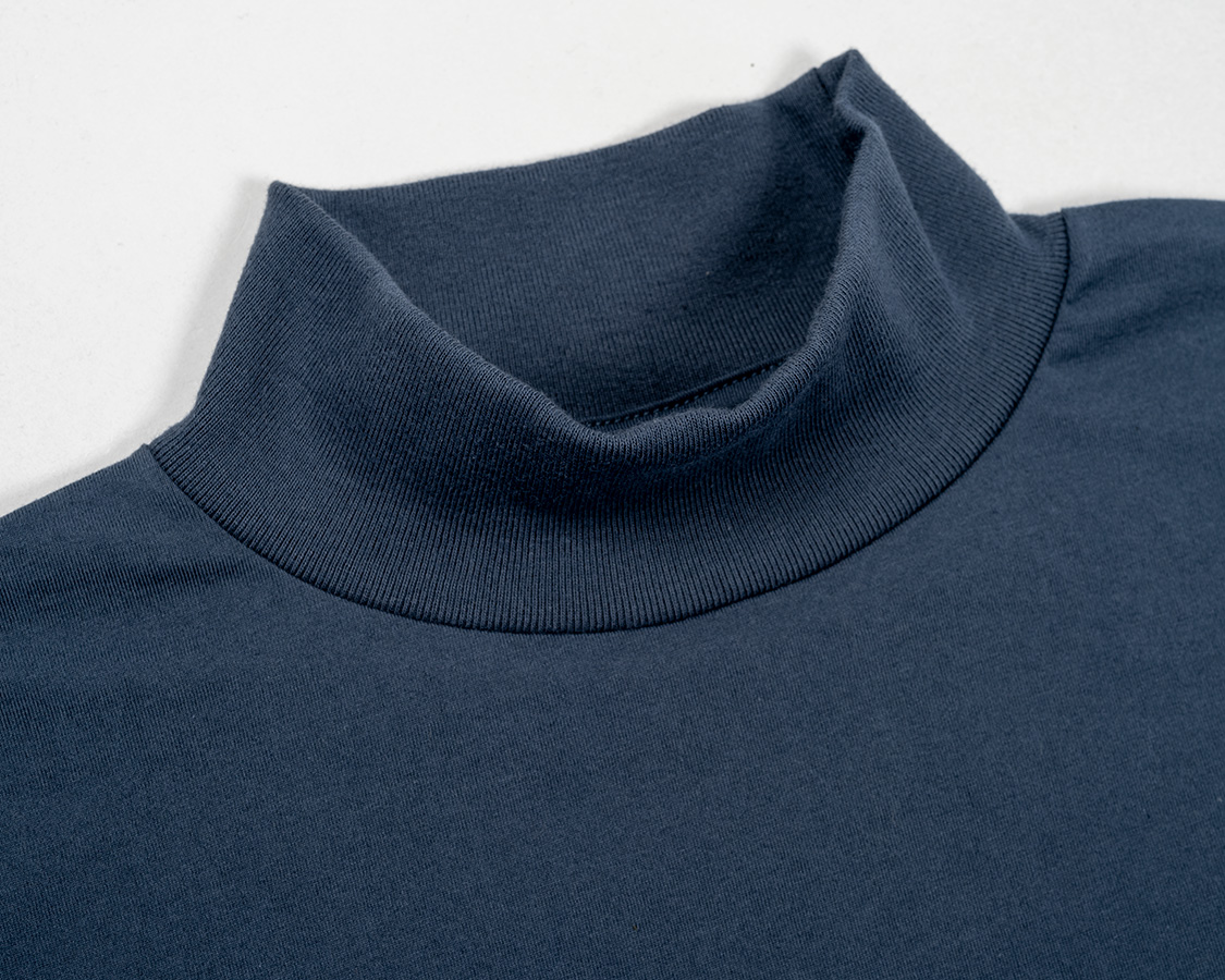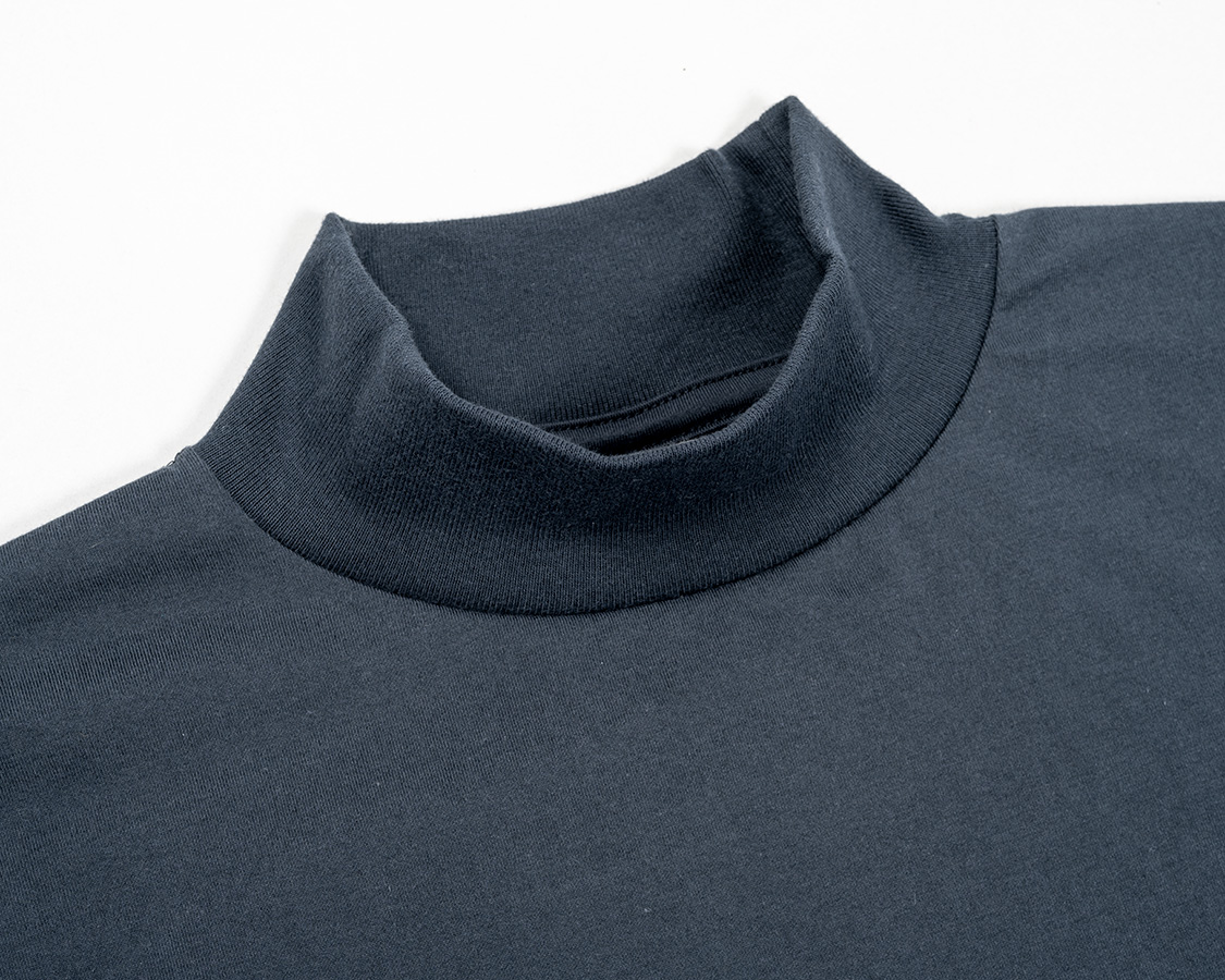 着るときに頭は通る、でも首回りつまり過ぎず、高すぎず。上着に首が直接触れるのを防いでくれるモックネック。