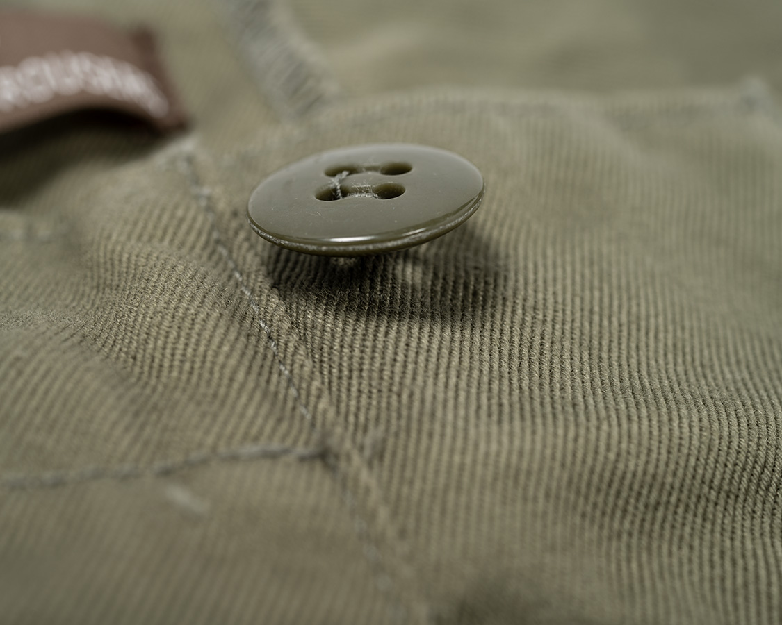 フロントはあえてのボタンフライ。私はクラシックなフロント開きが好きなので。