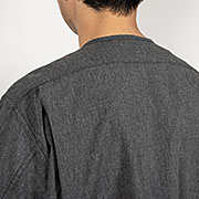 素材、ブラックシャンブレー、ネイビーチェックは5.5 オンス程、通年着られるシャツの厚み。ネイビーはインディゴのように見えますが、反応染めなので色落ちの心配はほとんど無し。