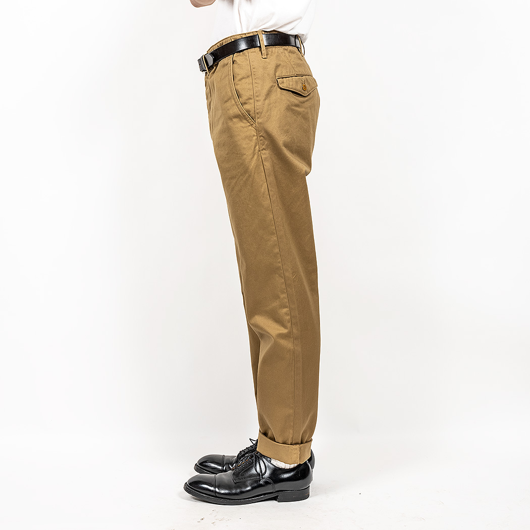 おなじみ、古今様々なチノパンを混ぜて作ったWorkers Officer Trousers。Slim Fit 「Class 2」、脇巻き縫い・ダブルステッチバージョン。