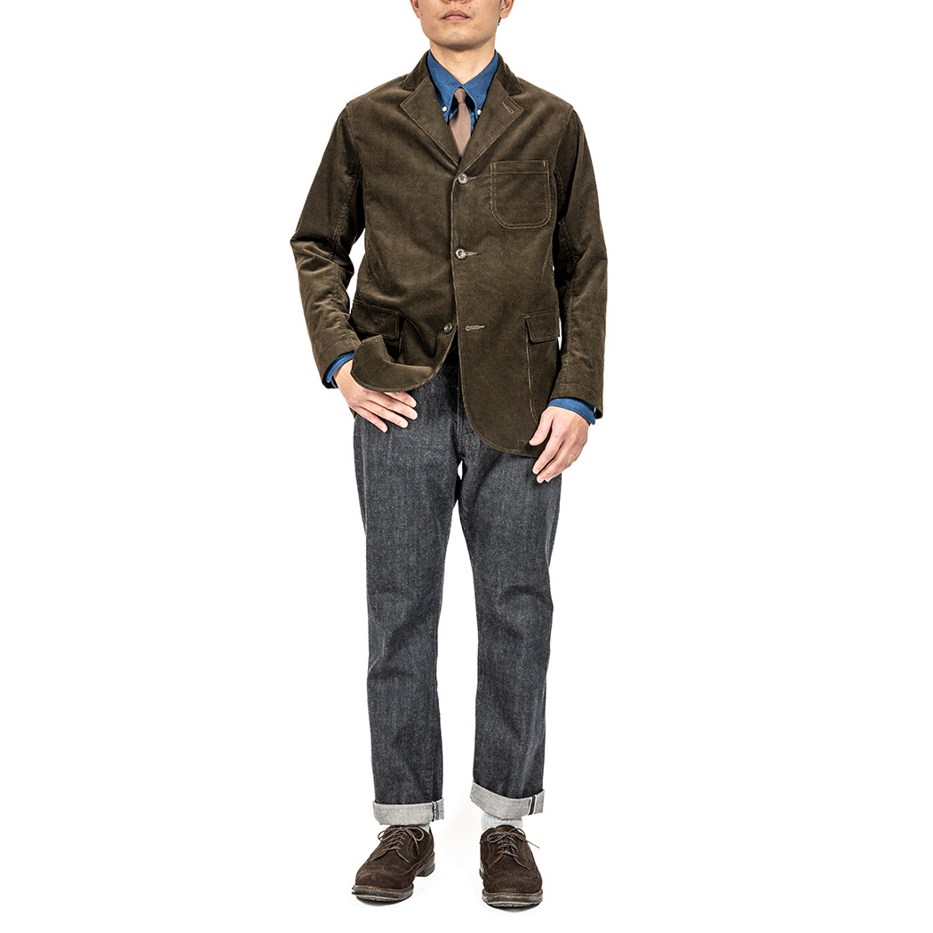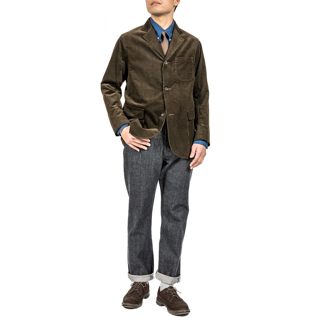 コーデュロイは細畝のこげ茶。太畝も良いですが、一度、細畝のLounge Jacketを作ってみたかったのです。
