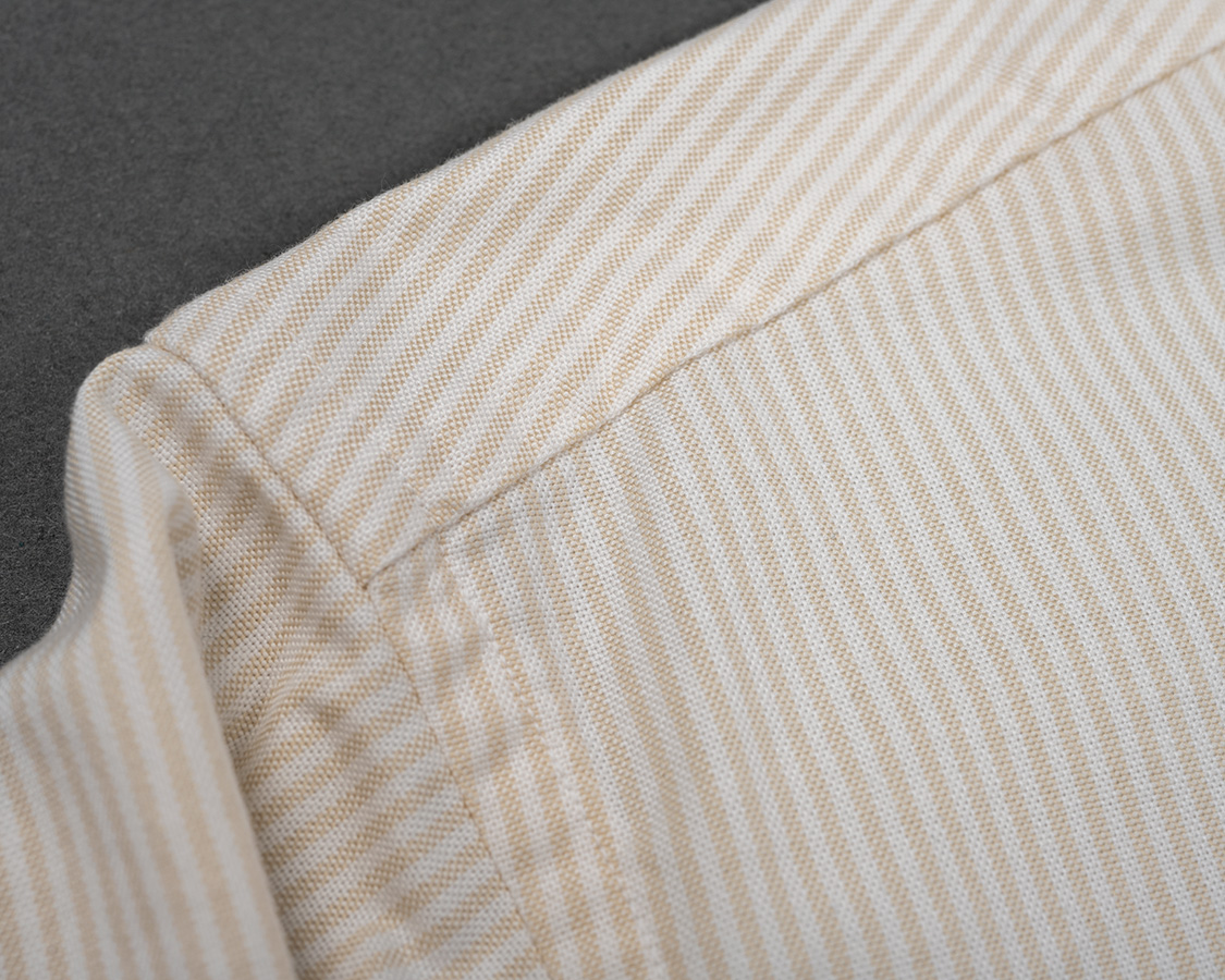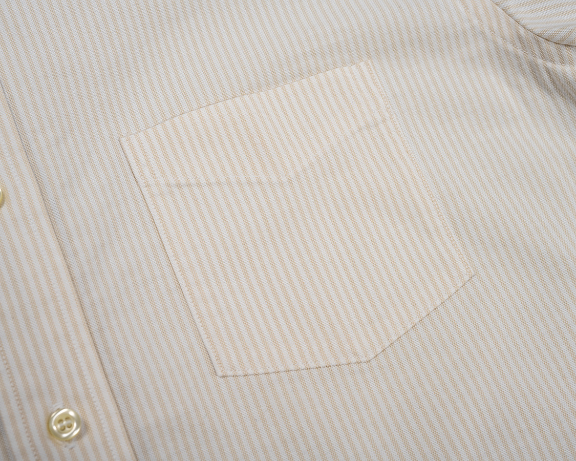 Band Collar Shirt, Ecru Stripe Supima OX |