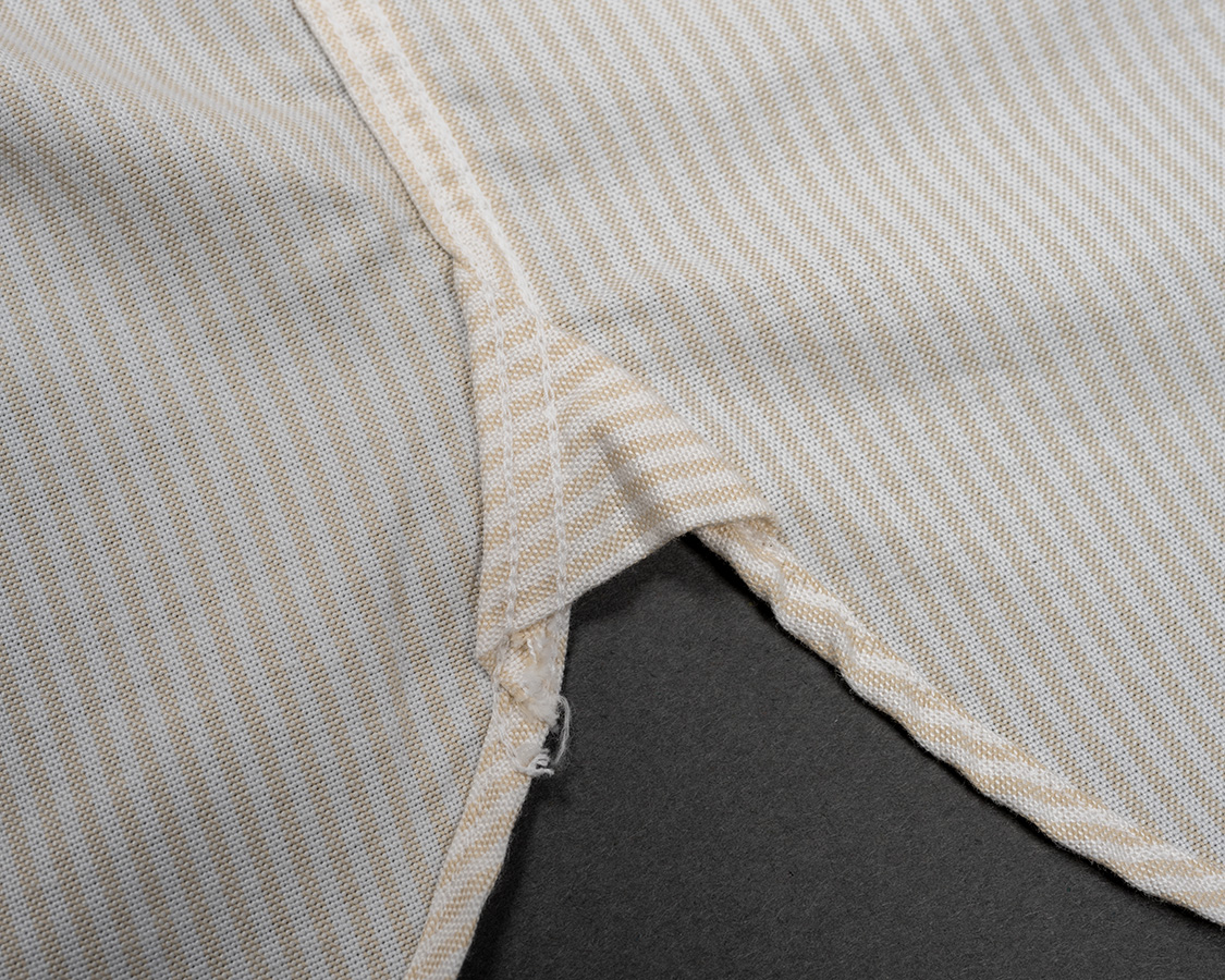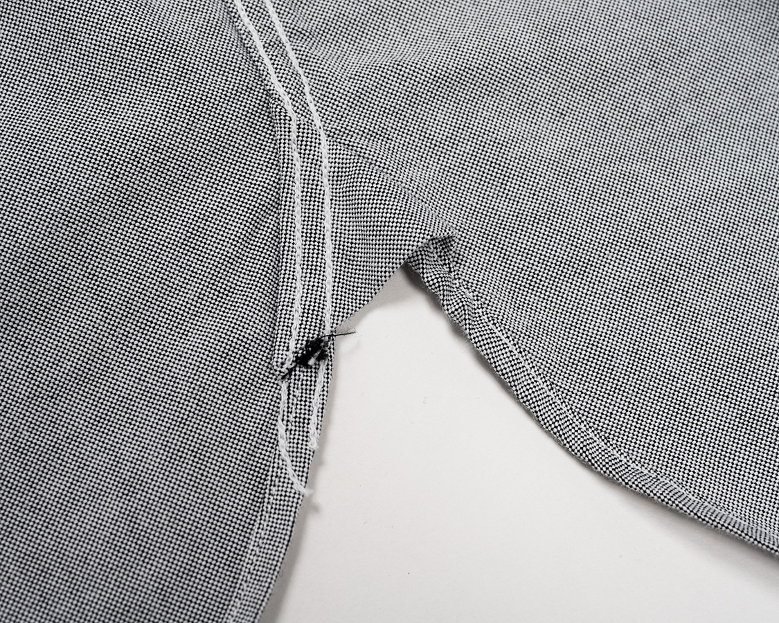 脇はクラシックにマチ付き仕様。脇は細幅の巻縫い、ダブルステッチ。