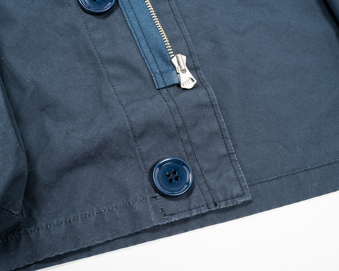 フロントはジッパー+ボタン止め。