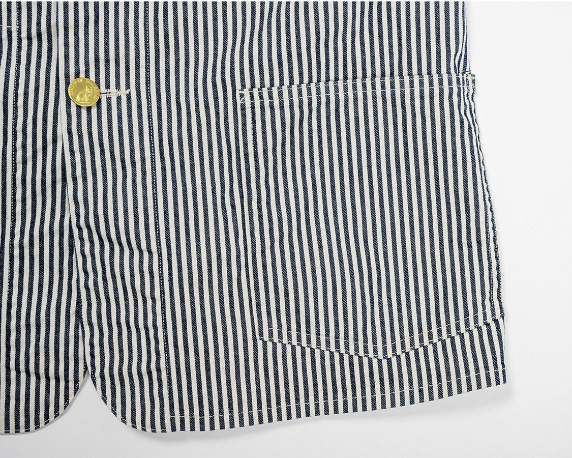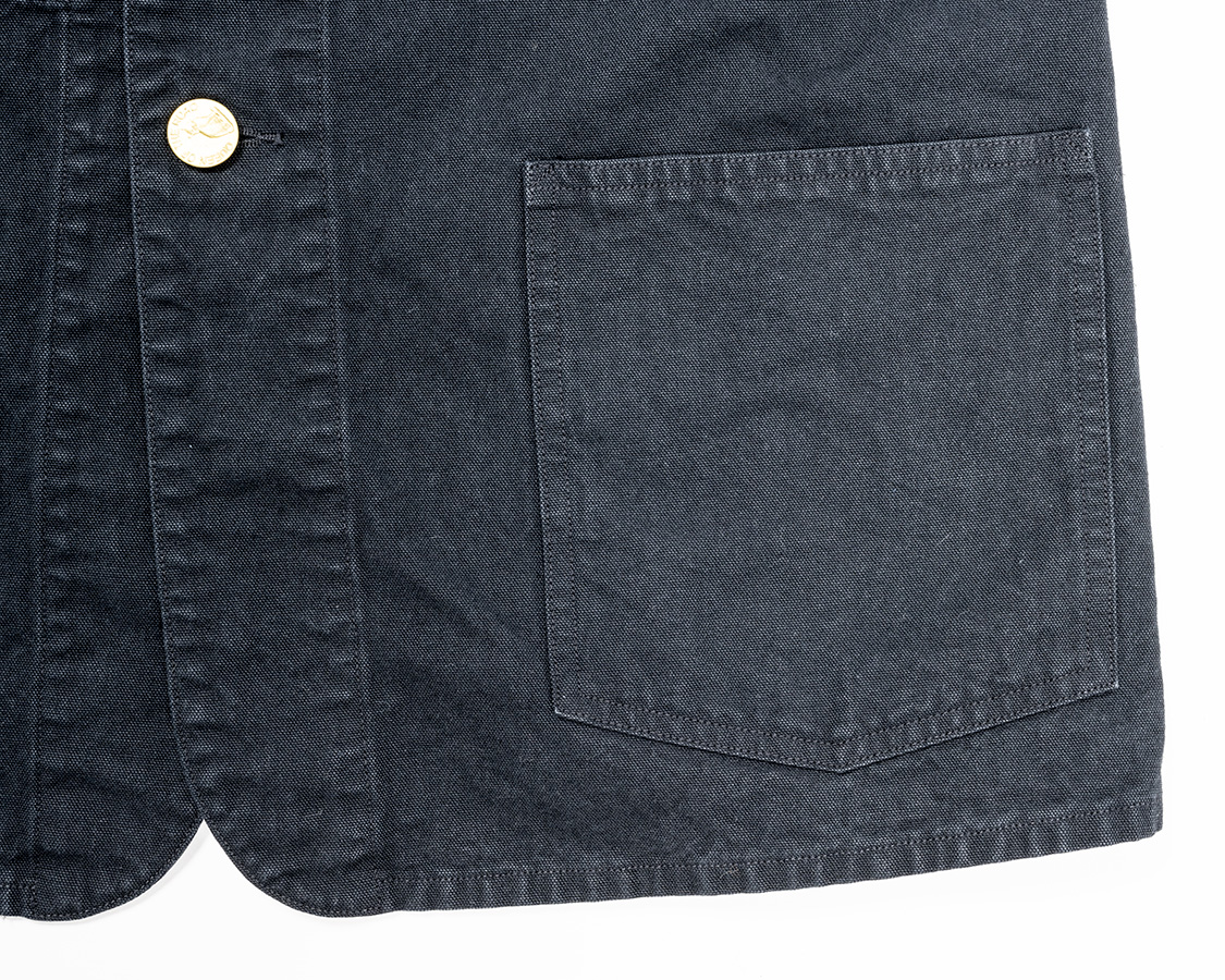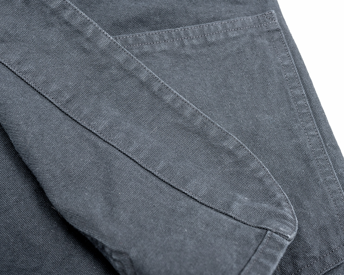 左右腰ポケット。補強布無し、取り付けは一本針なので角のチョウチョ(糸のワタリ)無し。ポケット口はここもステッチ補強。