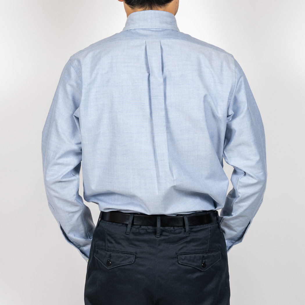 定番のスーピマオックスは少しガサっと固い。着こんでいくと柔らかくなじんでいく。オックスのシャツを襟が擦り切れるまで着た事がある方はわかると思います。あの「ぼろいんだけど着心地が良くて手放せない」までいくのがオックス。ドレスウェアに近い雰囲気で、「育つ」を実感できるのがオックスの面白いところ。重さは5.5オンス、通年着られる厚み。
