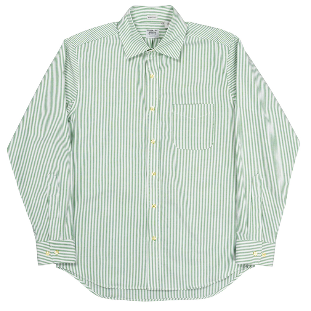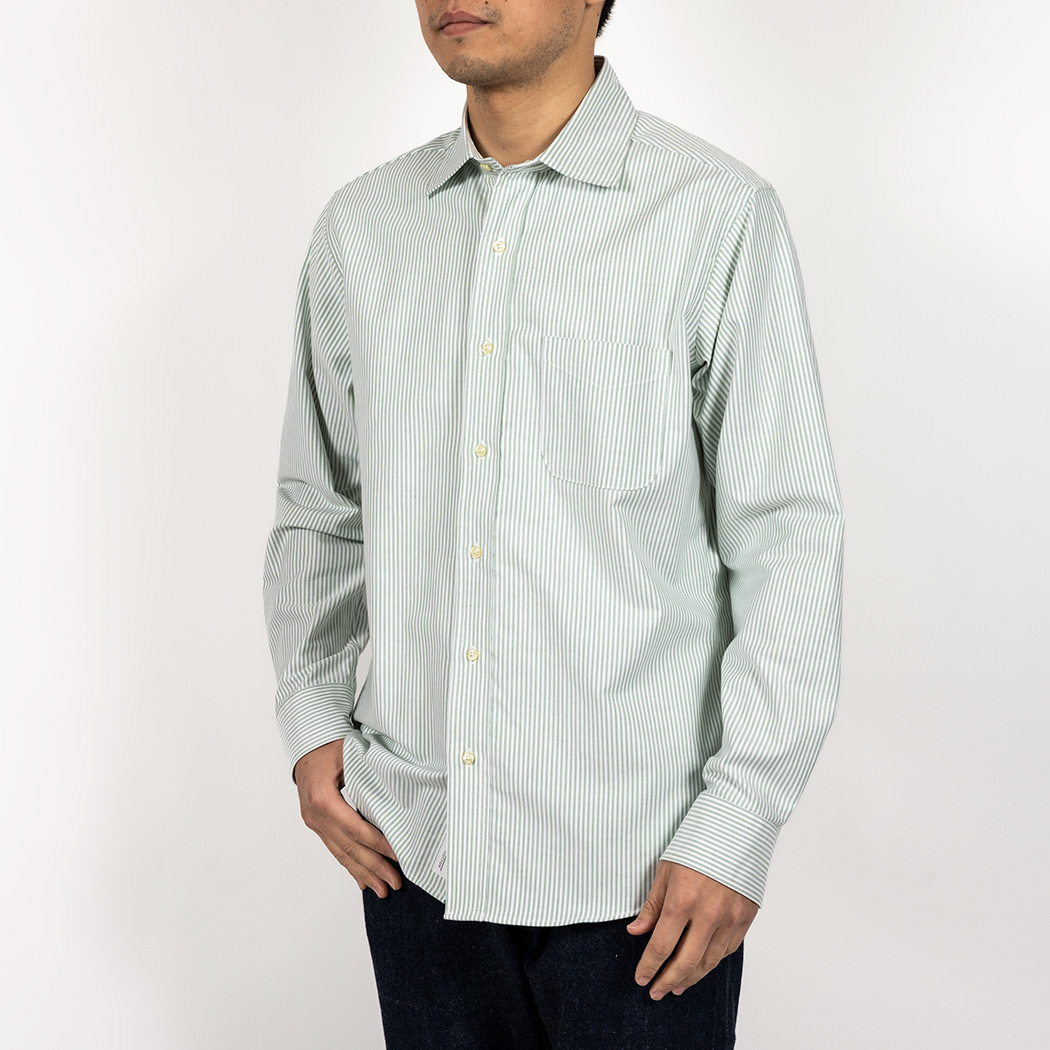Modified Wide Spread Shirt, American Sea Island Cotton OX, Green Stripe |