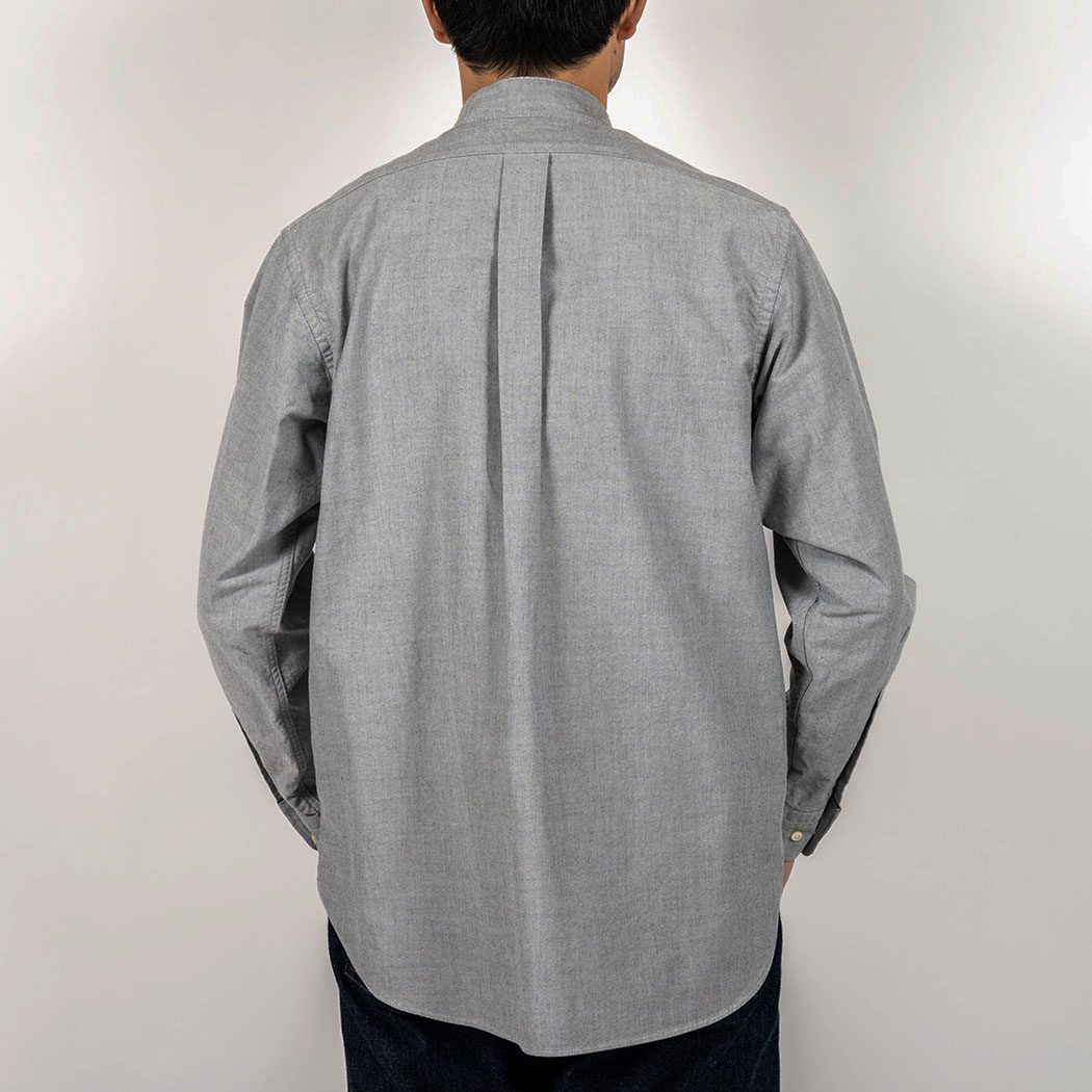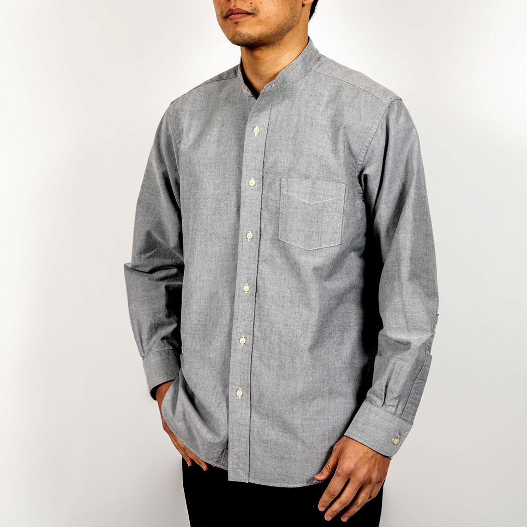 WORKERS のバンドカラーシャツは今までビンテージの細い襟回り、フロントはラウンドで、丈も長く脇の切り上がりが