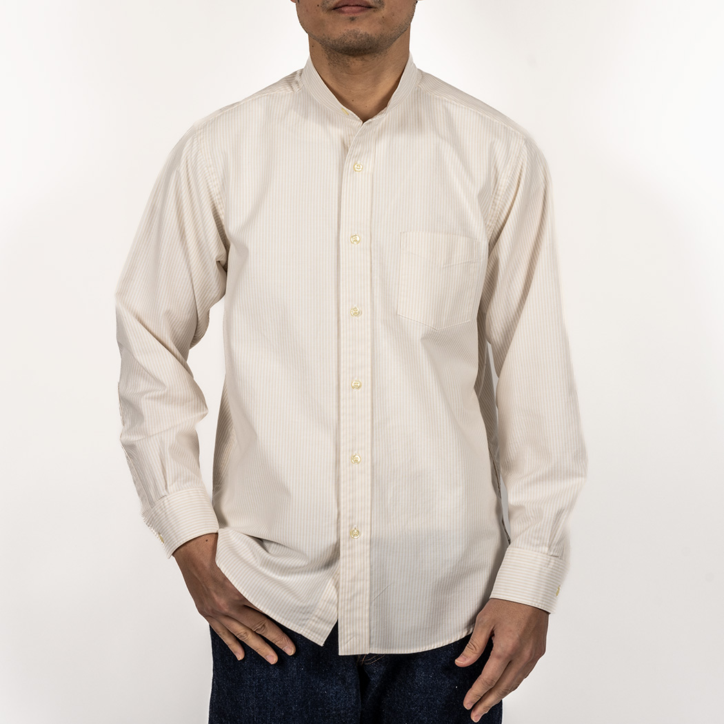 Band Collar Shirt, Ecru Stripe Supima OX |