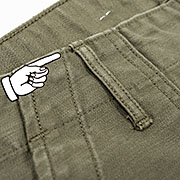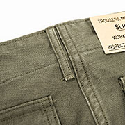 ビンテージミリタリーでよく見るやたら細いループの為に専用ミシンのループ縫いミシンを用意して工場に支給。腰裏の環縫いも当初はミシン作って支給していましたが、その後は工場さんがミシン買ってくれて・・・でもその工場は作ってくれなくなり・・・紆余曲折はありますが、今縫ってくれてる工場さんは腰裏に慣れたのでうまいです。すごく独特な縫い方はしていますが。 |