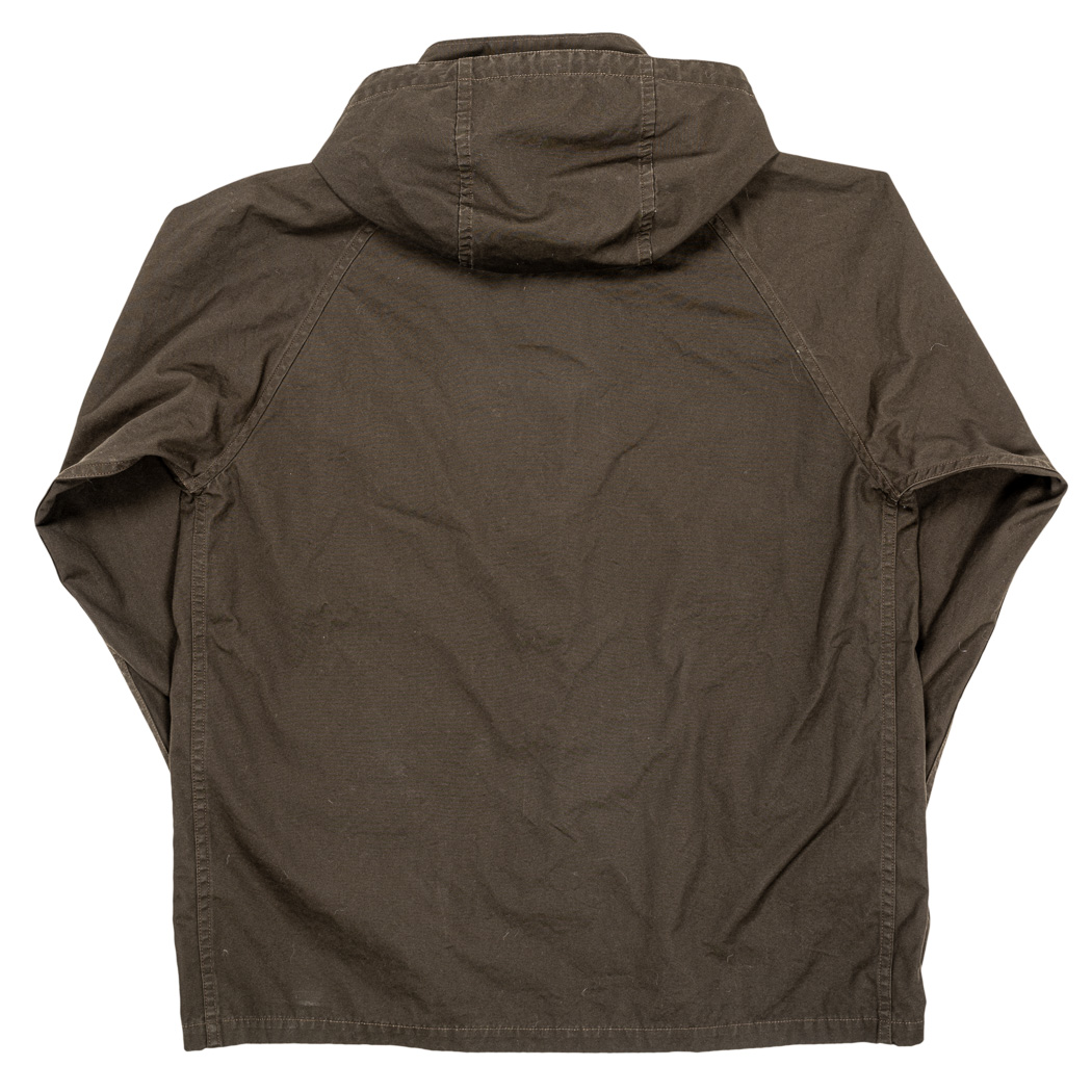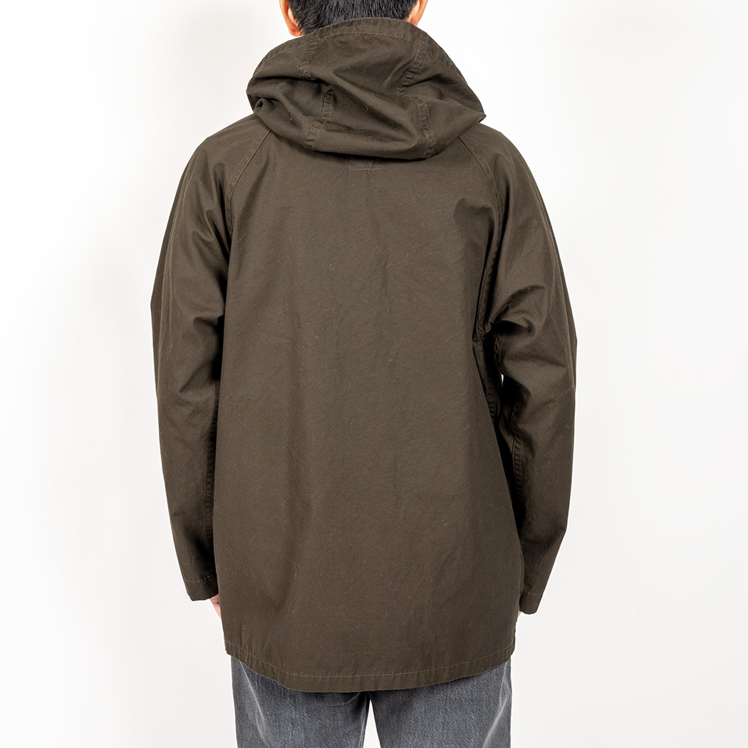 身頃をゆったり、アームホールもゆとりを取ったので中にシャツ+ 中厚セーターまでならOK。ジャケットを着るには裏 地も無いのでちょっときついかな?もっと、Fishtail Parka ぐらい思い切りゆとりを取れば一重のアウターにもなるのですが、そうすると逆に普段、シャツの上に羽織るにはゆったり過ぎる。RAF Parka は秋口や春先に羽織れるシルエットにしたいのでゆとりをつけすぎない、適度なフィット感に調整しています。