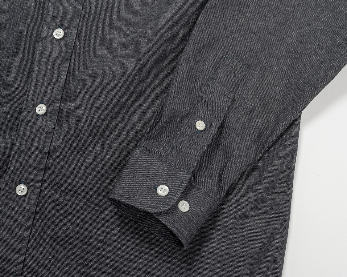 カフスは2枚物。芯止めステッチ入り。