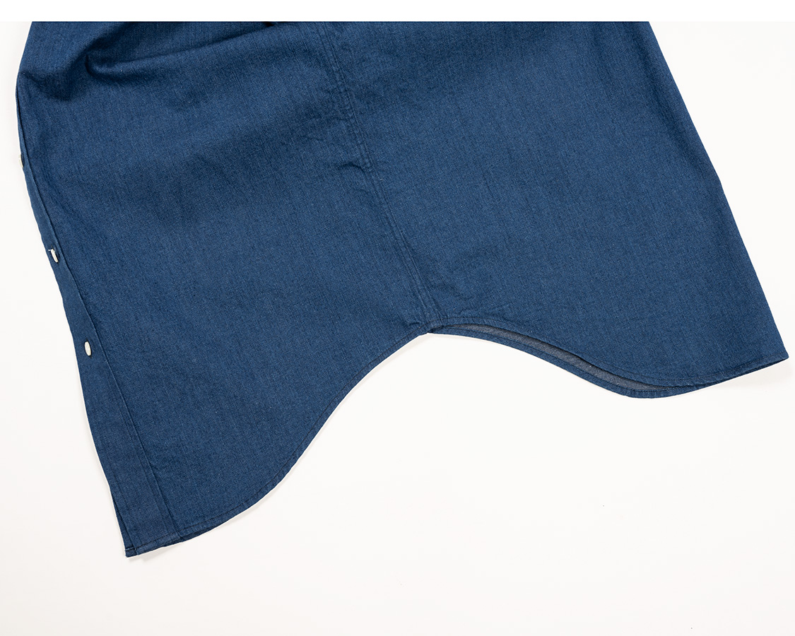 少し長めの着丈なのでしっかりと脇に向かって切り上がる。この前~脇~後ろの切り上がりカーブは型紙をひいていて一番悩みます。雰囲気を決める部分でもありつつ、縫いやすい・縫いにくいにも関わるので。