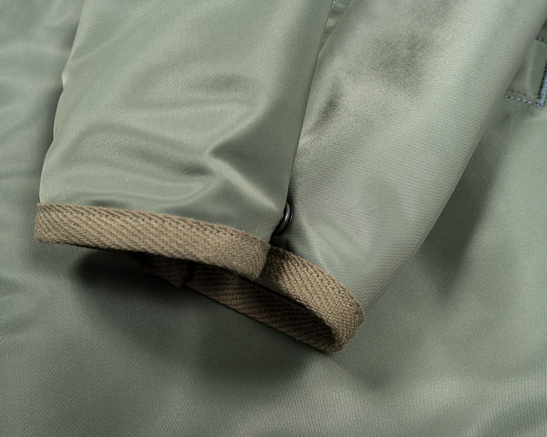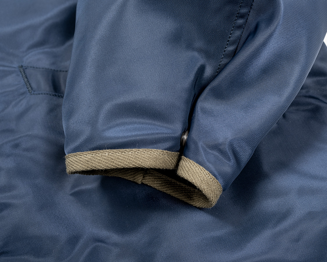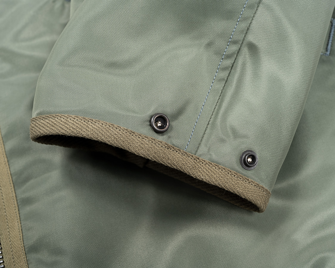 袖口もリブを無くし、調整にスナップ。L-2Bの肩・ポケットフラップ・三角タブについていたものを転用。