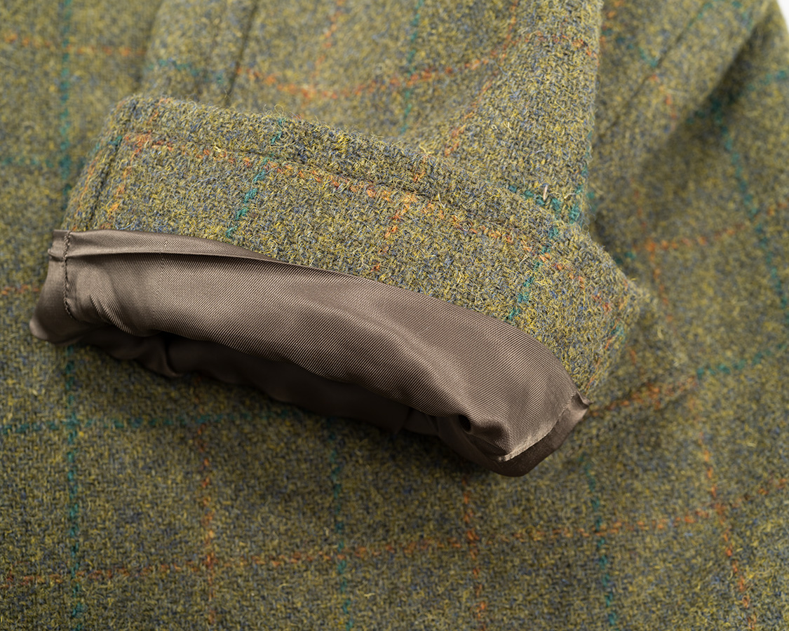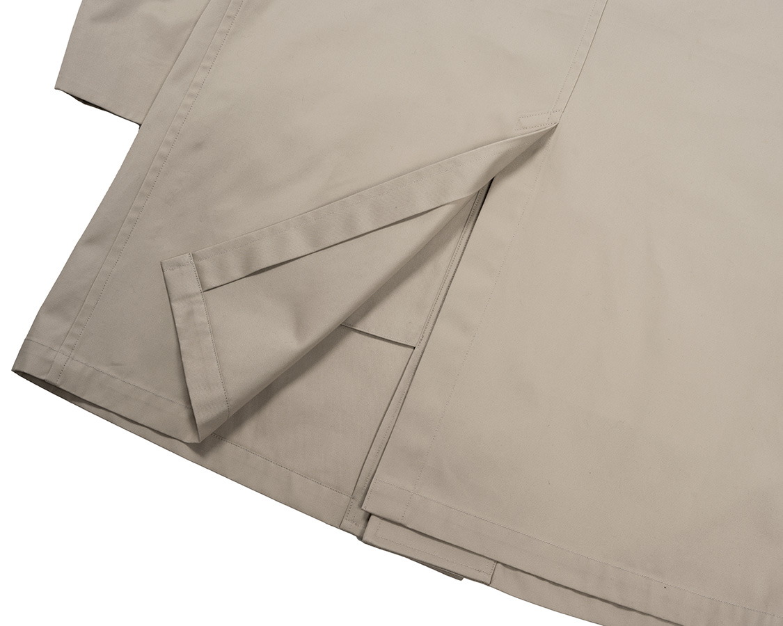 後ろ中心ベント。これが開くほど体を動かす事は中々無いのですが、いざという時にここが開いて突っ張らない。機能性を考えた仕様。