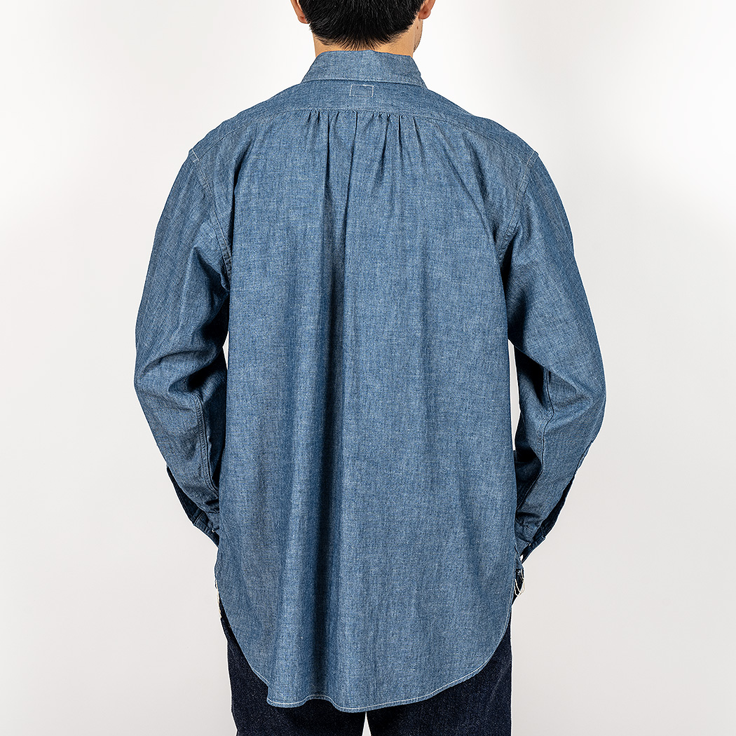 シャンブレー、5.5 オンス。通年着られる重さ・厚み。春から初夏は袖をまくって。真夏は1枚で。秋冬はインナーに。