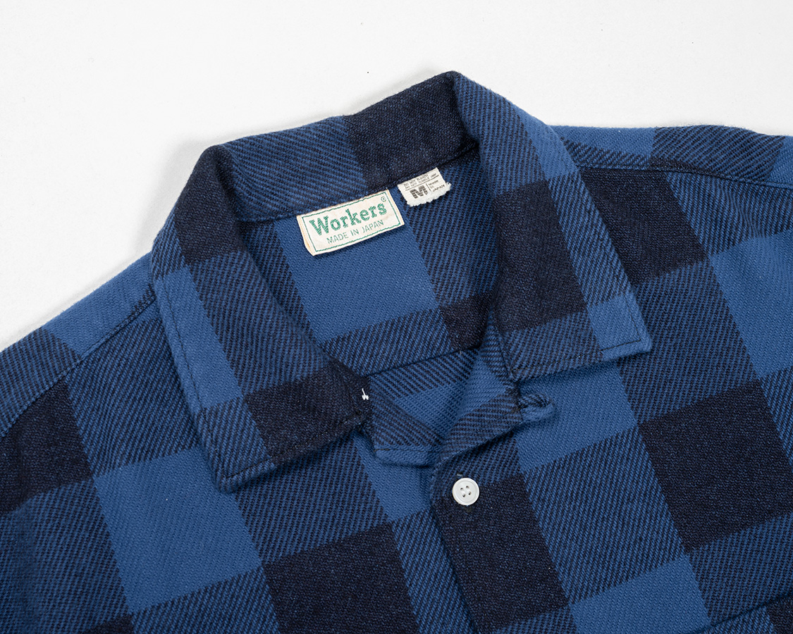 Flannel Open Collar Shirt, Navy Indigo Buffalo Check |