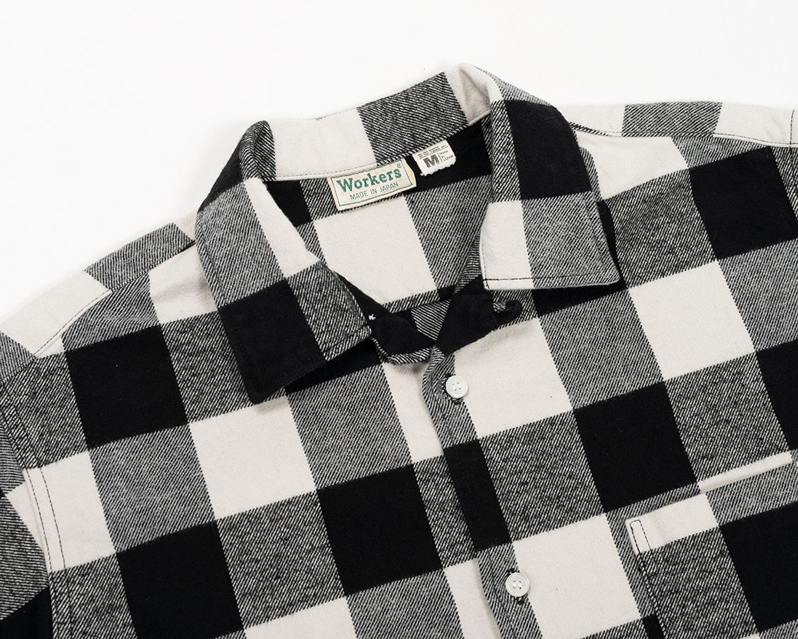 Flannel Open Collar Shirt, Grey Buffalo Check |