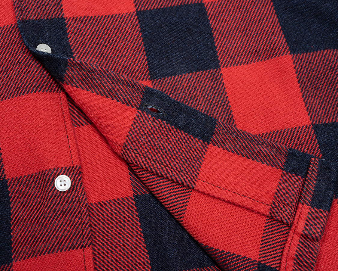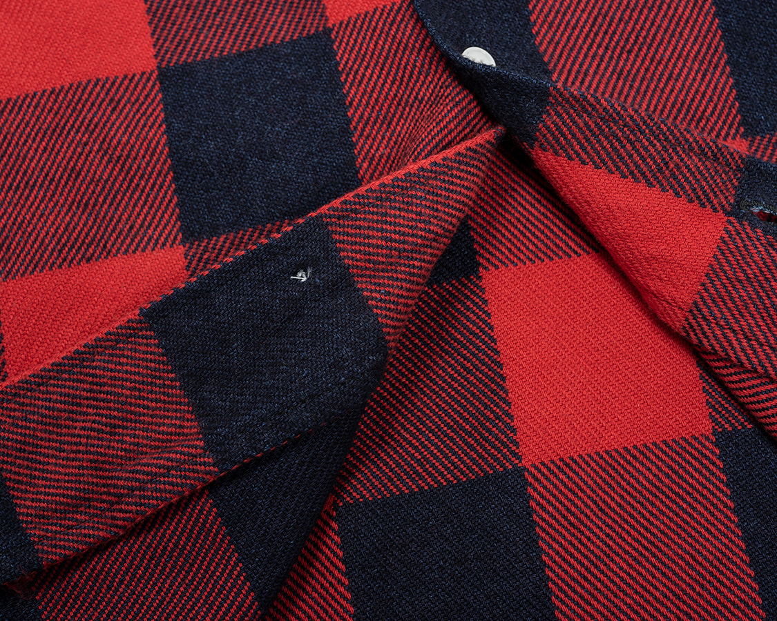 | Flannel Open Collar Shirt, Red Indigo Buffalo Check |