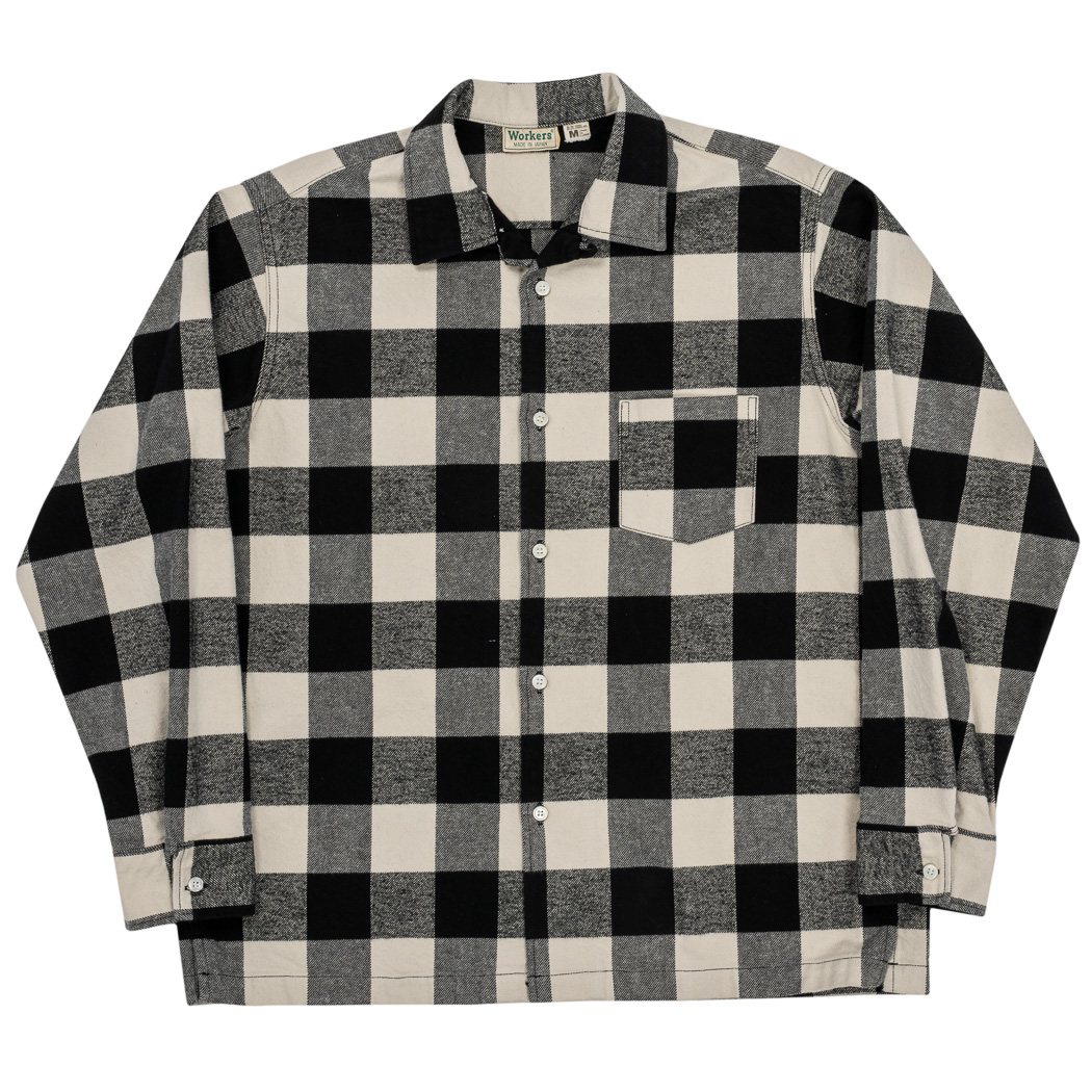 品名 Flannel Open Collar Shirt, White Buffalo Check