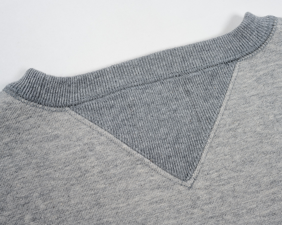 背面側のV。ここもはめ込み式、かつVは生地二重。「縫ってください」と頼んでおきながら思いますが、手間かかる仕様です。頼んでる工場さん、上手いですね、ステッチ見ても。正直、単価はかなりお高めなのですが、生地の作成から最終縫製まで、一貫で相談できる工場さんなのでここが良いのです。