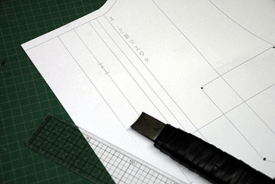 さらに、特許を調べて検討した、縫製仕様をもとにして縫い代をつけています。