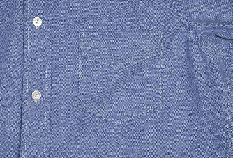 胸ポケット、ボタンダウンシャツでおなじみの樽型ではなく、ビンテージ好きの方にはおなじみの5角形・V字ステッチです。